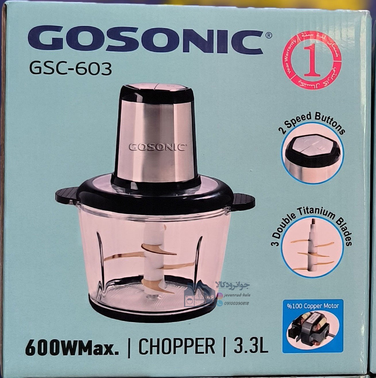توان مصرفی600 wکاسه شیشه ایحجم 3.3 لیترموتور2 موتورهتنظیمات سرعت2سرعتهجنس تیغهتیتانیومدکمهفشاریجنس بدنهاستیل و پیرکسعملکردPulsطول سیم1 متر